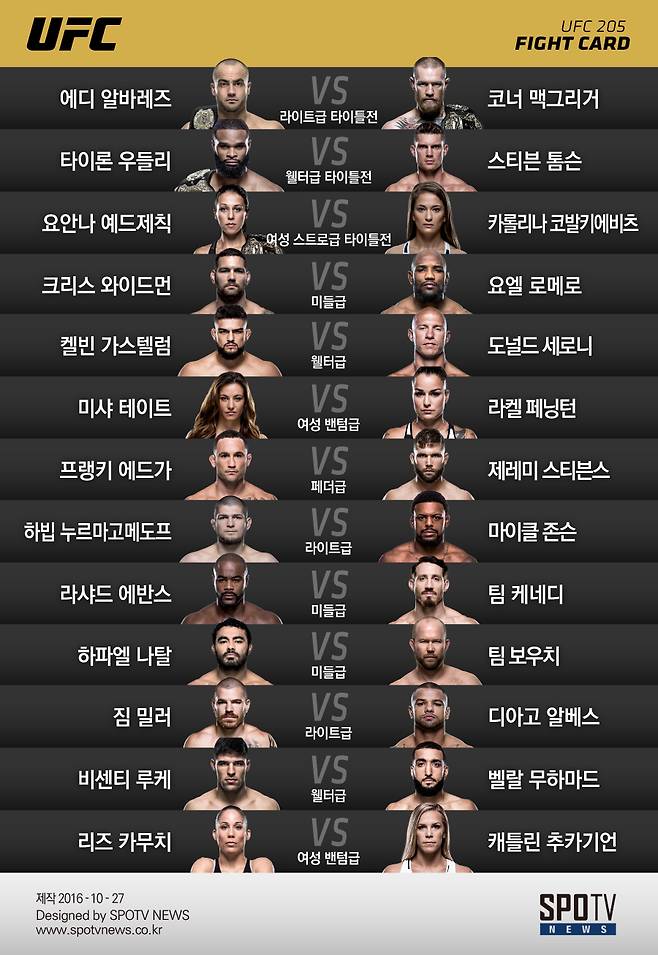 정점을 찍고 내려온 와이드먼은 새 출발을 앞두고 있다. 다음 달 13일(한국 시간) 뉴욕 매디슨 스퀘어 가든에서 열리는 UFC 205에서 요엘 로메로(39, 쿠바)와 경기한다. 여기서 이겨야 다시 타이틀에 도전할 수 있다.