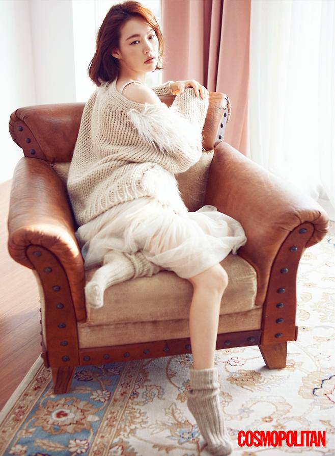 무용을 전공한 그녀는 ‘몸’으로 부드럽게 말할 줄 안다. 니트 카디건 66만8천원 에센셜. 슬립 드레스 42만9천원 매긴.스커트 24만5천원 레페토. 양말 스타일리스트 소장품.