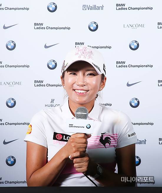 [영종도(인천)=마니아리포트 정진직객원기자] 14일 인천 영종도에 위치한 스카이72 골프클럽(파72ㅣ6,623야드)에서 올 시즌 열여덟 번째 대회인 'BMW 레이디스 챔피언십 2016'(총상금 12억 원, 우승상금 3억 원)' 1라운드가 열렸다. 이보미(28.노부타그룹)가 대회를 마친 뒤 공식 기자회견장에서 질문에 답변하고 있다.