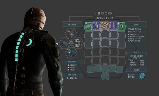 | 데드 스페이스 UI는 게임 진행 때는 보이지 않다가 호출하면 등장한다 – 이미지 출처: www.inventinginteractive.com | ||