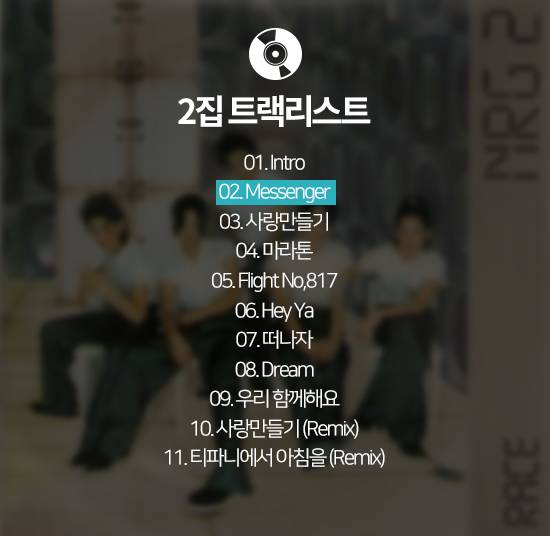 1집이 성공한 후 가요계에 성공적으로 안착한 NRG는 이듬해 8월 두 번째 정규 앨범 ‘레이스(Race)’를 발표했다.