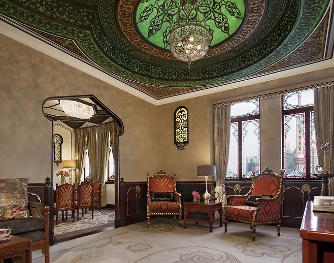 가장 흥미로운 호텔로 손꼽을 수 있는 곳은 페어몬트 피스 호텔(Fairmont Peace Hotel)이다. 톡톡 튀는 초록색 고깔 지붕으로 유명하다. 밤이면 야간 조명이 화려해 마치 와이탄 북쪽을 가리키는 등대처럼 보인다. 호텔이 처음 문을 연 것은 1929년으로, 당시에는 캐세이호텔(Cathay Hotel)이었다. 외국인 친구가 많았던 유대인 사장은 9개 나라의 특색을 담은 테마 스위트룸을 만들었는데, 다수의 유명 인사가 이곳을 거쳐갔다. 대표적인 사람이 찰리 채플린이다. 1936년 영화 ‘모던 타임즈’를 연출한 채플린은 영화 주인공이자 여자친구였던 파울레트 고다드와 인도룸에 머물렀다. 9개의 스위트룸은 지금도 원형 그대로 보존돼 VIP 고객이 묵는다. 닉슨 대통령은 1972년에 중국 비밀 방문 당시 미국룸에 머물기도 했다.