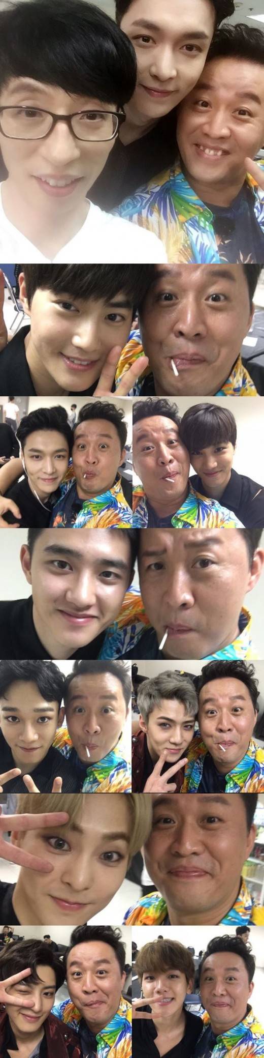 공개된 사진 속에는 '무한도전-댄싱킹'을 함께한 정준하, 유재석과 엑소 멤버들의 모습이 가득 담겼다.