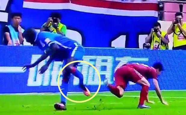중국 비매너 축구, 경기도중 다리 부러진 뎀바바