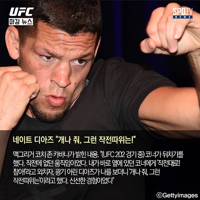 맥그리거의 코치 존 카바나는 지난 22일 미국 종합격투기 뉴스 사이트 MMA 파이팅과 인터뷰에서 경기에서 겪은 황당한 일을 소개했다. 한참 싸우고 있는 디아즈에게 욕을 먹은 사건(?)이었다.