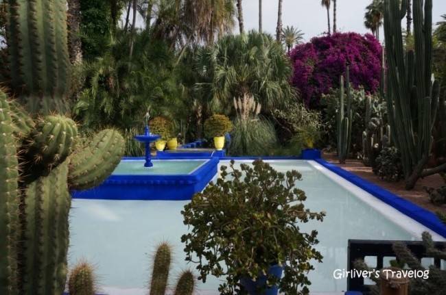 푸른 마조렐 정원은, 사막과 멀지 않은 마라케시이기에 더욱 돋보인다. 글자 그대로, 마조렐 정원은 ‘사막의 오아시스’다. 정원을 산책하다가 벤치에 앉았다가 열대 식물들 속에서 마조렐블루에 흠뻑 빠져 오후를 보낸다.