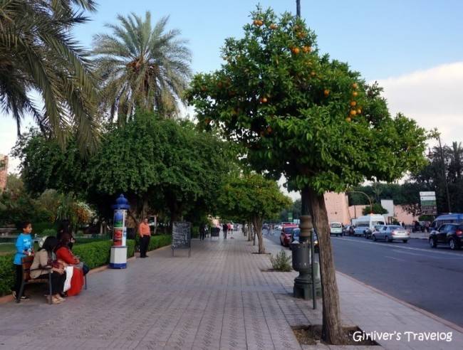 대형 건물과 아파트들이 있는 시내를 걸어보는 것도 좋은 경험이다. 덕분에 깨끗한 모로코의 거리를 걸으며 친절한 경찰관을 만나 길을 묻고 관광객과 관계없는 일반인들의 오후를 만날 수 있다. 남자들만 앉아있는 모로코식 카페를 지나가고, 검은 스카프를 두르고 아이들과 벤치에 앉아있는 여자들을 지나친다. 오렌지가 주렁주렁 달려있는 가로수들이 신기해서 보고 또 보며 걷는다.