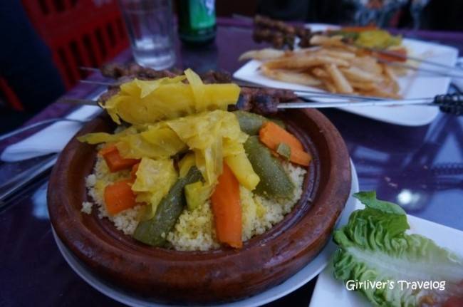 따진과 함께 모로코의 대표 요리인 “꾸스꾸스(Couscous)”를 주문한다. 밀가루를 으깨 좁쌀처럼 잘게 만들어 놓은 음식으로 채소 스튜를 얹어 먹는 요리다. 꼬치요리와 샐러드까지 주문한다. 두 사람은 내일 사막으로 가는 투어를 예약했다고 한다. 나는 사막은 가지 않기로 했다고 말해준다. 마라케시가 오아시스 도시여서 사막으로 가는 관문이기는 하지만, 이미 인도의 자이살메르 사막과 남미의 우유니 사막의 밤을 경험한 나는 사막투어가 내키지 않는다. 사하라 사막은 다음 여행을 위해 남겨두기로 한다.