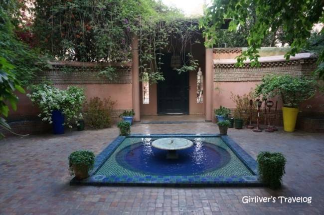마라케시의 명소인 마조렐 정원으로 들어가는 매표소에는 서양인 관광객이 줄을 서 있다. 오전 내내 입장료 10디람이면 궁전이나 박물관에 들어갔는데, 50디람이라는 거금의 입장료를 내는 이 정원은 무엇이 다를까? 입구에는 아름다운 푸른 타일로 꾸며진 분수와 붉은 사막의 도시 마라케시와 어울리지 않게 무성한 초록의 나무들이 방문객을 맞이한다.