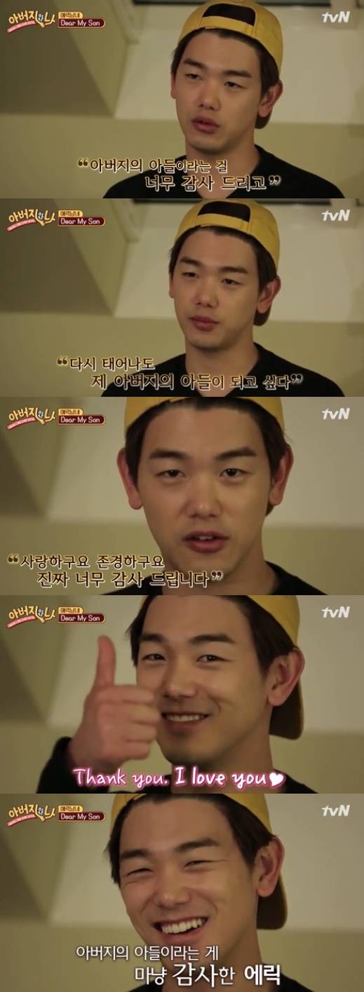 특히 에릭남은 "아버지의 아들이라는 걸 너무 감사드린다. 다시 태어나도 제 아버지의 아들이 되고 싶다"며 아버지에 "사랑하고, 존경한다. 감사드린다"며 고백했다.