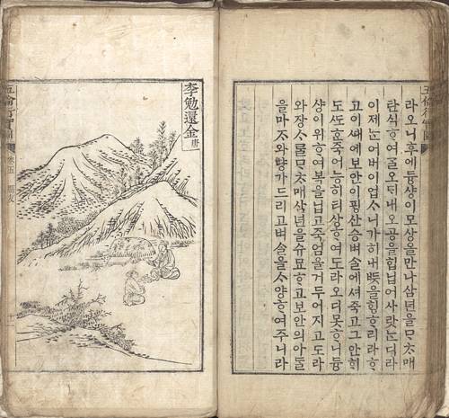 | 한글로 쓰고, 그림을 더해 일반 백성들의 이해를 도운 ‘오륜행실도 언해본’. 유교는 백성들의 삶에 큰 영향을 끼쳤고, 백성을 교화하는 다양한 서적들이 보급됐다. |