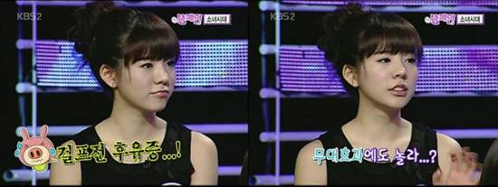 실제로 써니는 무대 중 자주 깜짝 깜짝 놀랍니다. 심지어, 너무 놀라 안무도 따라하지 못하는 경우도 있었습니다.