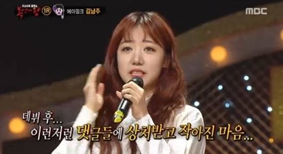 ▶ '에이핑크' 남주에게도 트라우마가 있습니다. 그녀는 무대 울렁증을 극복하기 위해, 가면을 쓰고 MBC-TV '일밤-복면가왕'에 출연한 바 있죠.