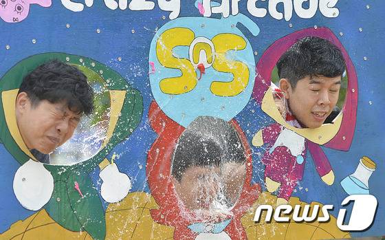 (대전ㆍ충남=뉴스1) 주기철 기자 = 21일 오후 대전 충남대학교에서 열린 ‘백마대동제’에서 학생들이 물풍선 던지기를 하며 즐거워하고 있다. 2016.9.21/뉴스1