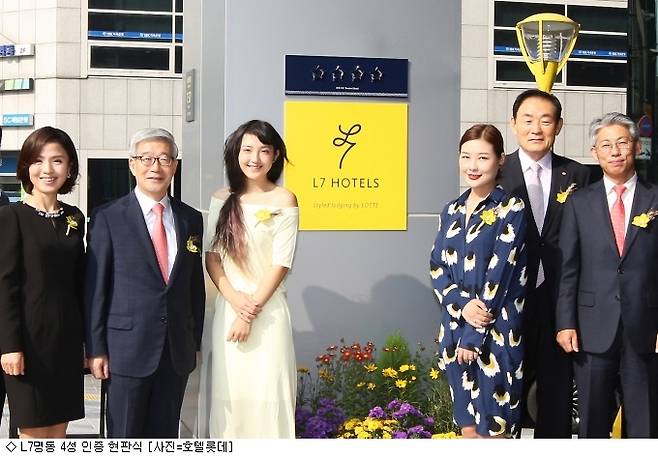 L7명동은 20일 1층 플랫폼 및 현관 일대에서 송용덕 호텔롯데 대표, 배현미 L7명동 총지배인, 중국 파워블로거 12명 등 20여명이 참석한 가운데 4성 인정 현판식을 가졌다.