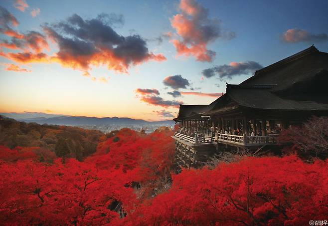 조금만 기다리면 찾아올 단풍 시즌. 왼쪽의 사진은 단풍의 절정기에 일본 교토 기요미즈데라(淸水事), 청수사를 촬영한 사진이다. 교토에 가면 꼭 한 번 가 봐야 할 일본의 국보다. 그러나 이런 명소를 찾는 시간은 대부분 대낮이기 마련이다. 촬영에 있어 가장 중요한 광원인 해가 높이 떠 있는 시간에는 그림자가 짙고 빛이 거칠어 아름다운 사진을 찍기 힘들다.