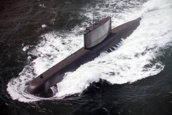 | ▲ 최무선과학관 내부에 전시되어 있는 잠수함 최무선호의 사진. 1200톤급의 이 잠수함은 1993년 8월 7일 진수식을 가졌는데, 어뢰 및 기뢰를 장착하고 있다. |