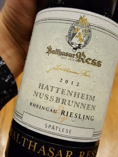 하텐하임 누스부루넌 라인가우 리슬링 슈패트레제(Hattenheim Nussbrunnen Rheingau Riesling Spätlese) 2012는 당도가 리터당 50g 정도다. 최고등급인 그로세 라게 포도로 빚는다. 10~20년 보관해도 좋을 정도의 숙성 잠재력이 있다. 열대과일과 잘익은 사과, 노란 과실, 체리의 향이 균형감있게 다가온다.