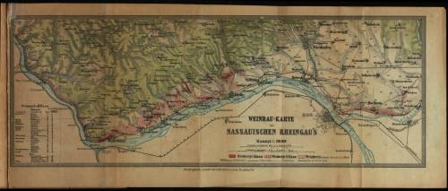 | 1867년에 작성된 세계에서 가장장 오래된 포도밭 지도. 라인강을 따라 라인가우 포도밭의 등급이 상세하게 기록돼 있다. 출처 홈페이지 |