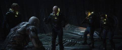 | ▲ 영화 <프로메테우스> 스틸컷. 데이빗은 동면 중인 마지막 엔지니어를 깨우고 웨이랜드 회장과 쇼는 서로 다른 질문을 하고자 엔지니어를 만난다. |