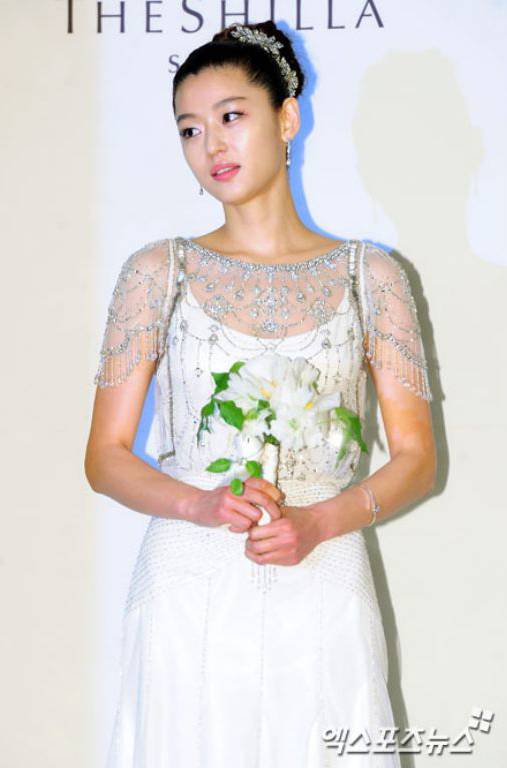 전지현의 이브닝드레스는 '제니팩햄'의 드레스이다. (당시 본식 드레스가 아니라는 얘기에 팬들은 안도했다는 소문이...) 심플한 A 라인 드레스에 화려한 크리스털 볼레로를 레이어드해 여신이 귀환한 듯하다.