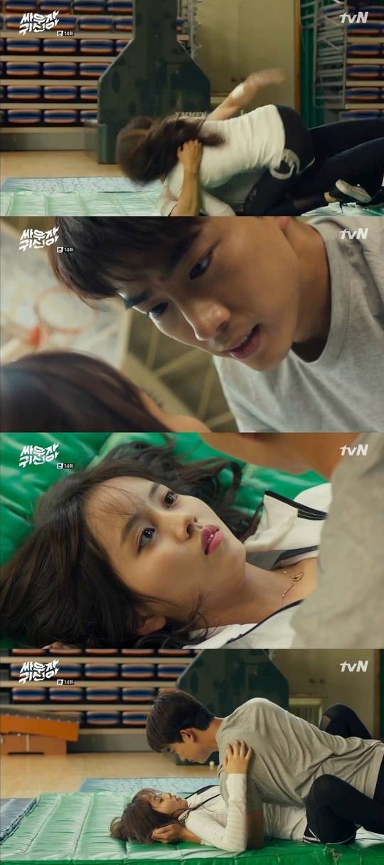 8월 23일 방송된 tvN 월화드라마 ‘싸우자 귀신아’ 14회(극본 이대일/연출 박준화)에서 박봉팔(옥택연 분)과 김현지(김소현 분)은 호신술을 연습했다.