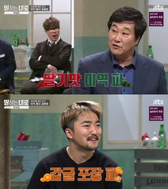 또 김복준은 "제주도에 딸기맛 미역파라고 있다. 자기들끼리 딸파라고 부른다. 딸기맛 미역파의 전신은 감귤 포장파다"고 말해 웃음을 자아냈다.