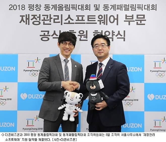 더존비즈온은 8일 평창 동계올림픽대회 및 동계패럴림픽대회 조직위원회와 후원 협약식을 체결했으며, 전사적자원관리(ERP) 시스템 '더존 ERP iU'를 공급하기로 했다.