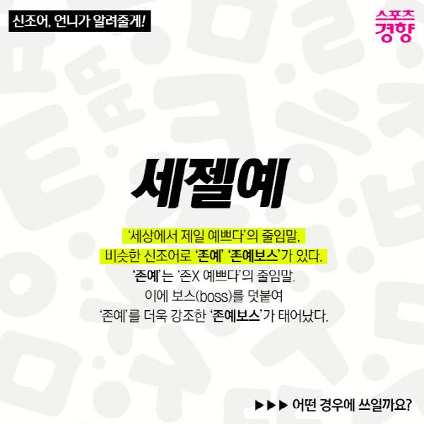[신조어, 언니가 알려줄게!] '세젤예' '존예' 무슨 뜻일까?