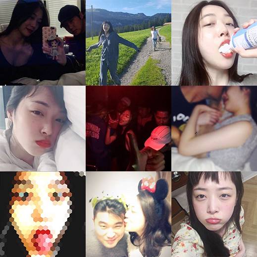 설리가 인스타그램 계정을 개설한 후 가장 먼저 올린 것은 로타와 함께 작업한 사진이었다. 뽀얀 얼굴의 설리가 침대에 누워 있는 해당 이미지를 두고 연예 매체들은 “순수하면서도 귀여운 이미지”([중앙일보]) 등의 표현을 썼으며, 언론은 물론 네티즌들 사이에서도 이 사진은 문제적이라고 언급되지 않았다. 그러나 설리가 최자와 침대에 함께 누워 키스하는 사진을 게재하자, 절대 봐서는 안 될 음란물을 본 것처럼 모두가 당황했다. 일각에서는 이들의 커플 사진을 가리켜 수위가 높다고 이야기하기도 했지만 두 사람은 그저 입을 맞추고 있을 뿐이며, 인스타그램을 잠깐만 둘러봐도 이 정도의 커플 사진은 수도 없이 올라온다. 보이지 않는 것을 앞질러 상상하며 해당 이미지를 음란물로 만드는 쪽은 오히려 설리를 비난하는 사람들이다. 조용히 연애하는 일조차 쉽지 않았던 여성 연예인이, 이보다 더 직접적일 수는 없는 방식으로 연인과의 행복한 모습을 드러낸다. 보이지 않으면 억지로 들춰내려 하고, 공개하면 자제하라고 하는 세상에서 자신의 의지대로 행동하는 설리의 행보는 도리어 응원받아 마땅하지 않을까?