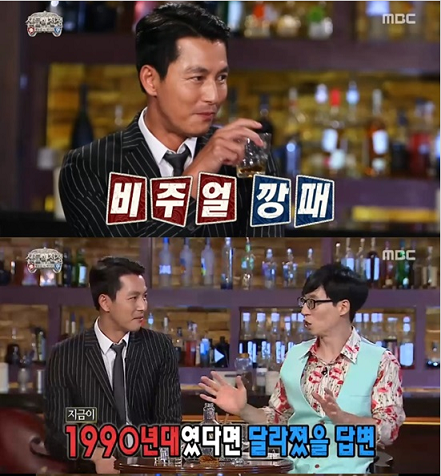 이에 유재석은 "90년대였다면 이런 대답이 아니었을 것"이라며 다시 물었고, 정우성은 "(90년대였으면) 아이, 부끄럽습니다"라는 순발력 있는 답변을 해 유재석을 폭소케 했다.