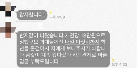 1. 졸업생에게 졸업반지를 선물한다며 1~3학년생 전원에게 인당 13만원씩 내도록 강요한다.