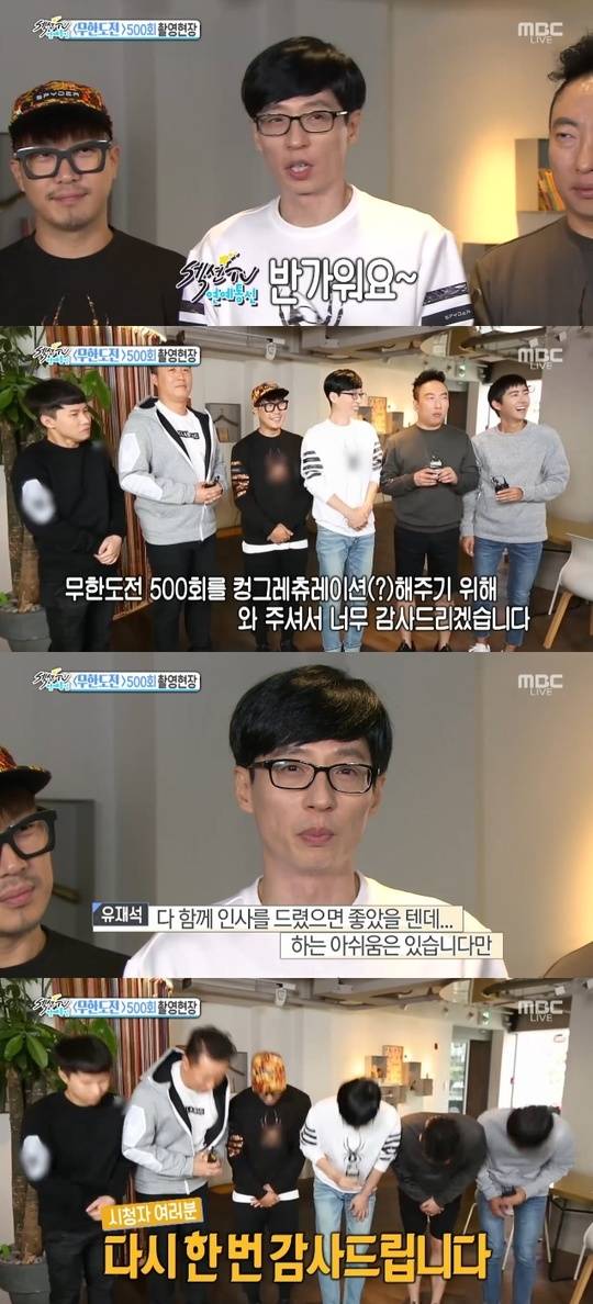 '무한도전' 유재석 "500회, 다함께 하지못해 아쉬워" 하차 멤버 언급