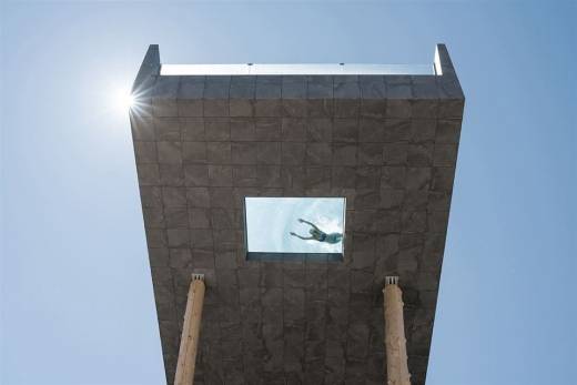 하늘을 나는 기분을 느낄 수 있는 수영장이 있어 화제다. 미국의 건축사무소 NOA(No Architecture)가 설계한 이 수영장은 해발 1350m 높이의 호텔에서 아름답게 탁 트인 경관을 마음껏 즐길 수 있다. 호텔 4층, 지상에서 12m 높이에 있는 이 수영장의 크기는 길이 25m, 폭 5m, 깊이 1.3m로 충분히 크다. 또한 수영장 바닥이 유리로 돼 있어 수영하면서 자연경관을 충분히 즐길 수 있는 것이다.
