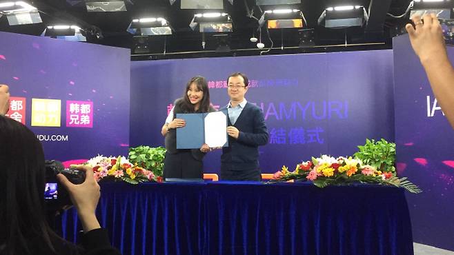 유리가 경영하는 의류 쇼핑몰 ‘아이엠유리’는 지난 15일 중국 최대 패션전문 전자상거래 기업 한두이서와 입점 계약을 맺었다.