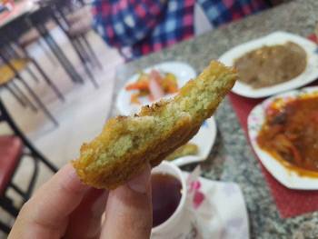 풀 메다메스(ful medames). 어디를 가나 쉽게 볼 수 있는 이집트 사람들의 아침식사다. 넓적한 누에콩을 뭉근하게 끓여 죽이나 소스처럼 만든 것이다. 여기에 레몬즙, 오일, 고추소스, 소금, 커민 등으로 취향껏 양념을 한 뒤 둥글납작한 빵 에이쉬를 찍어 먹는다. 초절임한 야채나 삶은 달걀을 곁들여 먹기도 한다. 시장이나 길거리 푸드트럭에선 한 접시에 3~5파운드, 우리 돈으로 400~600원 정도 주면 사 먹을 수 있다. 람세스 힐튼 같은 5성급 호텔의 200파운드(2만5400원)짜리 조식 뷔페에도 풀 메다메스는 빠지지 않는다. 모양과 차림새는 달라도 맛은 크게 다르지 않다.