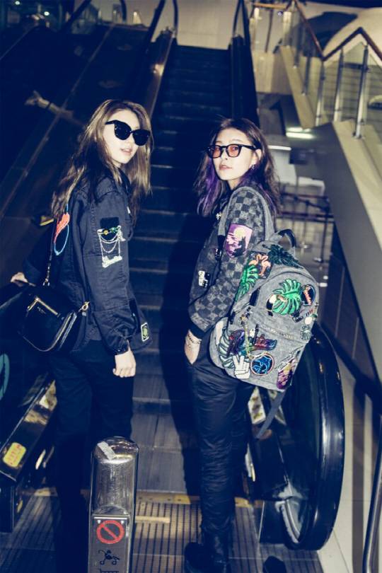 모델 송해나와 김진경이 눈뗄 수 없는 독특한 공항 패션을 선보였다.