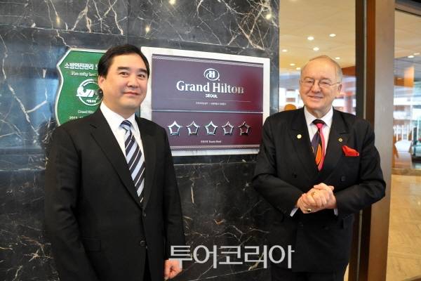 [투어코리아] 그랜드 힐튼 서울이 한국관광공사에서 시행하는 호텔 별 등급제 심사에서 국내 최고 등급인 5성(Five star)을 획득했다. 이에따라 그랜드 힐튼 서울은 지난 26일 호텔 입구에서 대표이사, 총지배인 및 호텔 임직원이 함께 모인 가운데 5성 호텔 현판식 행사를 진행했다.