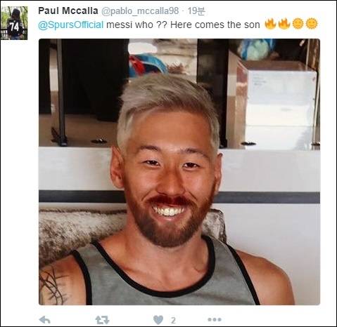 토트넘 트위터에서는 현지 누리꾼이 손흥민과 리오넬 메시(바르셀로나)를 합성한 사진을 올려 웃음을 자아낸다. 현지 팬들은 손흥민의 파괴적인 드리블과 골 결정력에 매료돼 메시, 호날두에 견주고 있다.