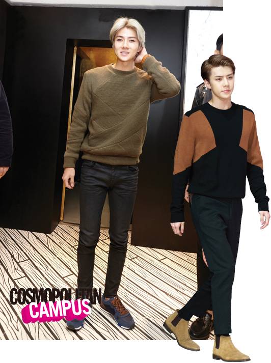 세훈(@oohsehun) 7.5백만수많은 소녀 팬을 몰고 다니는 엑소 막내 세훈의 스타일을 한마디로 표현하자면 심플! 깔끔한 디자인의 스웨터나 스 셔츠에 블랙 슬랙스를 더해 가을과 잘어울리는 댄디남 스타일로 완성한다.