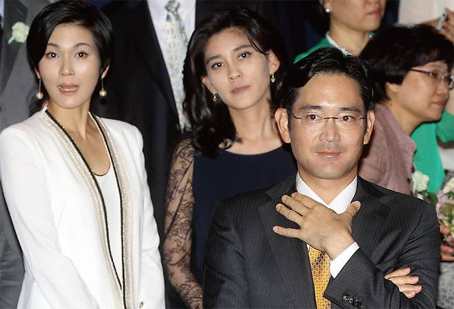 (사진) 이재용(앞줄 오른쪽 첫째) 삼성전자 부회장과 이부진(가운데) 호텔신라 사장, 이서현 삼성물산 사장. /연합뉴스