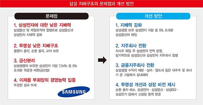 하지만 재계 1위 삼성의 지배구조 변화에 대해 글로벌 투자자들까지 큰 관심을 두고 있다는 사실은 이번 주주 제안을 통해 확실히 알려졌다.