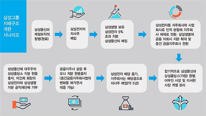 이 같은 고려 사항들을 따져보면 다음의 시나리오로 삼성의 지배구조가 변화될 가능성이 높다.