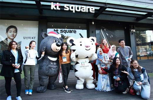 평창 동계올림픽 공식 파트너사인 KT 광화문 사옥에는 ‘이제는 평창이다’라는 계기별 메시지와 함께 마스코트 대형 현수막이 한 달간 걸릴 예정이다.
