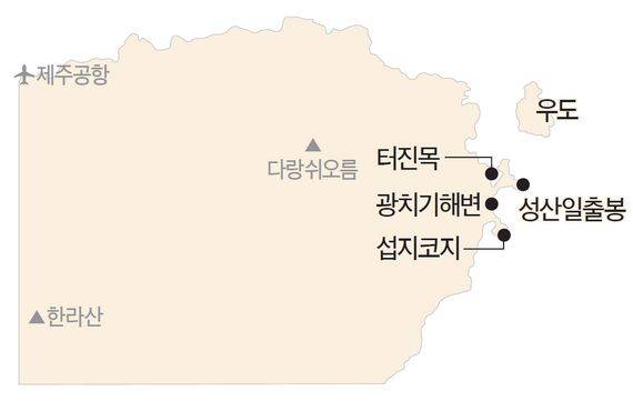 제주도 명승 열 곳을 열거한 영주10경의 제1경이 성산출일(城山出日)이다. 제주도에서 첫 번째로 꼽히는 장관이 성산에서 떠오르는 해라는 말이다. 그 유명한 일출 장면 덕분에 성산이라는 이름에 일출봉이 붙었다. 한동안 일출봉으로만 불리다 최근에는 성산일출봉으로 통일됐다.