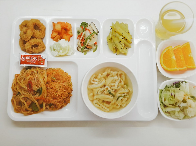 특히 유명한 급식 메뉴로 학교에서 직접 개발한 ‘사치면’&’사치밥’을 꼽을 수 있다. 치가 4개 있다는 의미로 지은 특이한 이름이다. 음식에 들어있다는 '사(4)치'란 시금치, 김치, 날치(알), 참치다. 또 한 달에 한 번씩은 생일 이벤트를 급식실에서 열어준다. 각 달마다 자신의 생일을 적으면 추첨해서 케이크를 제공하고 사진을 찍어주는 이벤트를 진행한다.