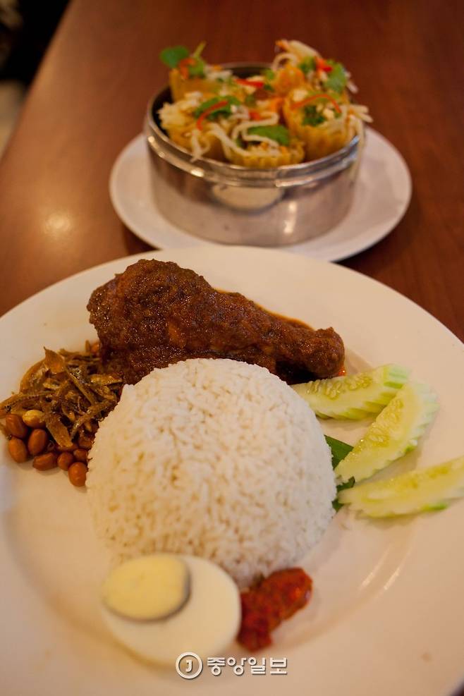 말레이시아인들이 가장 흔하게 먹는 음식이라면 ‘나시 르막(Nasi Lemak)’을 꼽을 수 있다. 쌀밥에 반찬 서너개를 곁들인 서민 음식이다. 코코넛 밀크와 생강, 시나몬 등을 넣어 풍미를 살린 쌀밥과 달콤한 볶음 멸치와 땅콩, 삶은 달걀, 채 썬 오이, 커리 양념에 볶은 고기(소고기 혹은 닭고기)가 전부다. 지극히 평범한 차림이지만 든든하고 먹고 돌아서면 또 생각나는 맛이다. 어느 식당을 가든 맛이 비슷하다. 길거리의 허름한 식당이나 백화점 푸드코트 같은 곳에서 먹으면 저렴하다. 쿠알라룸푸르의 상징, 페트로나스 쌍둥이빌딩 저층부에 있는 수리아KLCC 4층에 있는 리틀 페낭 카페(Little Penang Cafe)를 추천한다. 디저트로 파는 ‘첸돌(Cendol)’도 꼭 먹어봐야 한다. 우리네 팥빙수와 비슷한데 훨씬 고소하다. 리틀페낭카페 나시 르막 약 3000원, 첸돌 1600원.