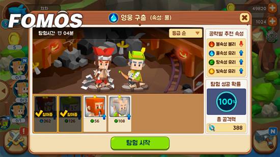 더불어 영웅 캐릭터들을 수집하고 탐험 콘텐츠, 몬스터 퇴치를 진행해 광물 수집, 스킬 연구, 보물 획득을 할 수 있다. 각각의 영웅은 벌어들인 재화를 바탕으로 성장가능하다.
