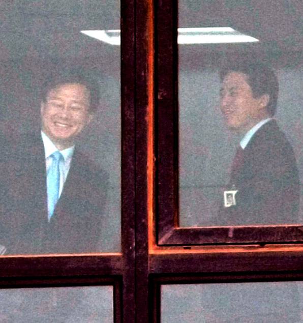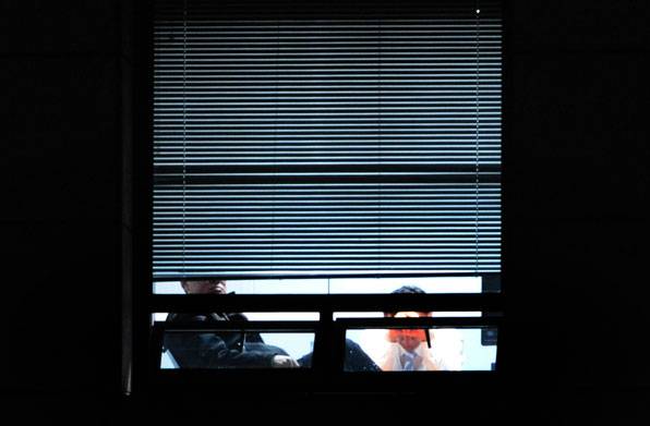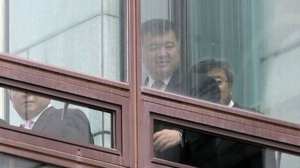 '2억 원가량의 시계를 논두렁에 버렸다' 등의 '박연차 게이트' 조사를 받기 위해, 고 노무현 전 대통령이 서울 서초동 대검찰청 중수부에 출석한 날이다. 당시 홍만표 수사기획관과 이인규 중수부장이 창문 너머로 보인 모습이다.