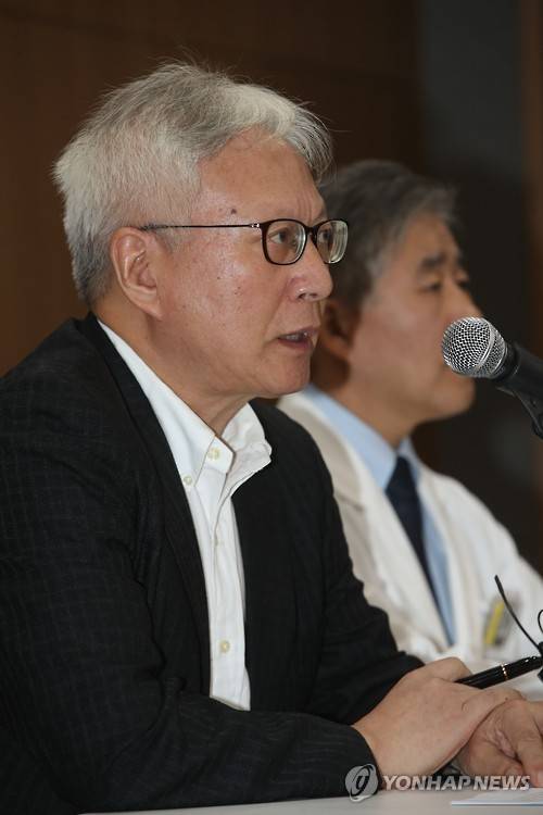 (서울=연합뉴스) 박동주 기자 = 3일 오후 서울대학교병원 의학연구혁신센터에서 열린 고 백남기 씨의 사망진단서 논란에 대한 서울대병원-서울대 의대 합동 특별조사위원회 기자회견에서 이윤성 서울대 의대 법의학교실 교수가 논의 결과를 설명하고 있다. 2016.10.3